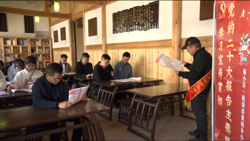黃柏村耕讀學(xué)堂里,七旬高齡退休老教師張增良秉持著“退休不褪色、銀發(fā)再生輝”的信念,帶頭組建“銀發(fā)宣講團”,憶往昔崢嶸歲月,訴今朝奮進歷程,用生動樸實、通俗易懂的語言宣講黨的二十大精神。