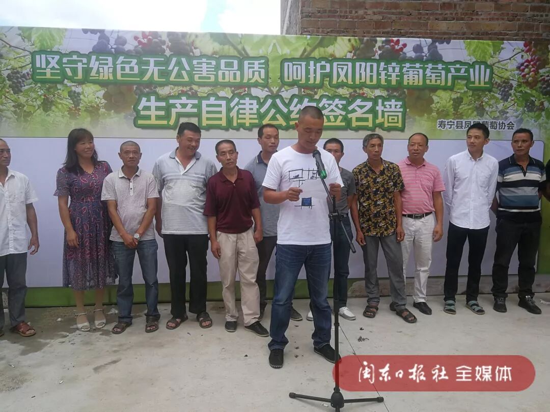“不在空氣、土質(zhì)受污染區(qū)域種植,不使用高度高殘留農(nóng)藥和淘汰農(nóng)藥......”鳳陽(yáng)葡萄種植示范大戶宣誓無(wú)公害種植承諾,發(fā)出倡議,鋅葡萄種植戶代表在“堅(jiān)守綠色無(wú)公害品質(zhì)· 呵護(hù)鳳陽(yáng)鋅葡萄產(chǎn)業(yè)”生產(chǎn)自律公約墻上簽名承諾。