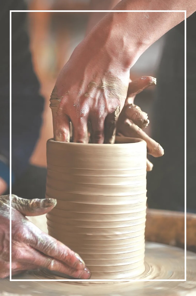 轉動笨重的陶車,讓原本“蜷”成一團的泥土在雙手中“站立”起來,硋底、硋身、硋口慢慢成型。塑成型的硋需先晾兩天,用小木板反復敲打修整,讓表面光滑,同時去除黏土中的氣泡。接著用木板打上花紋,再晾上三五天,等干透了方能上釉,最后裝窯燒制。在36小時的燒制過程中,肖永燦要不斷“觀火”添柴。判斷窯溫很關鍵,稍不留神,火候掌控不好,窯內三四千件硋器就會功虧一簣。