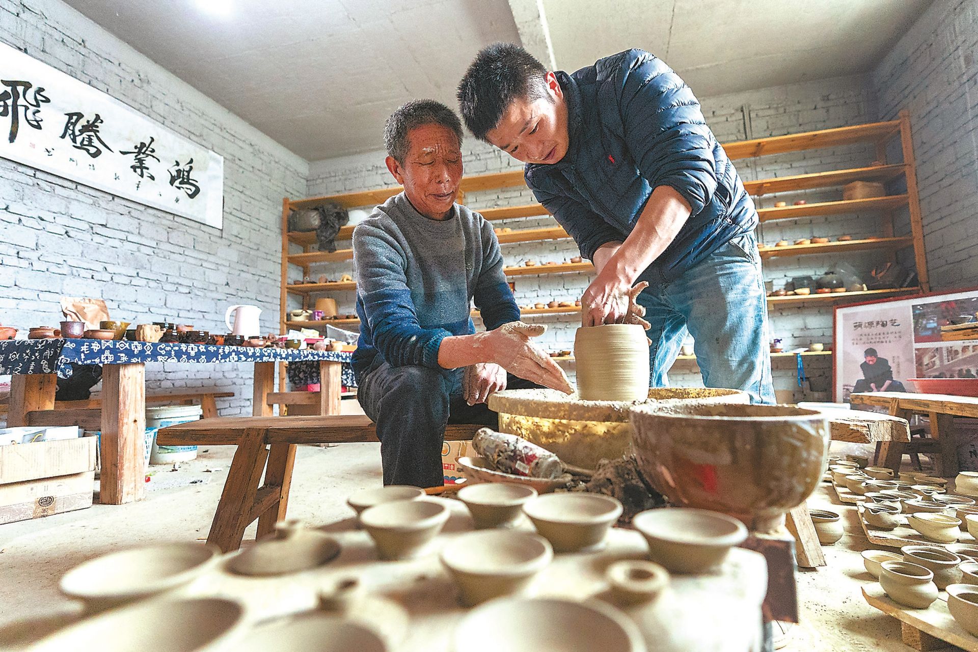父子倆一起研究創(chuàng)作新的硋器作品,老手藝也要有新花樣。
