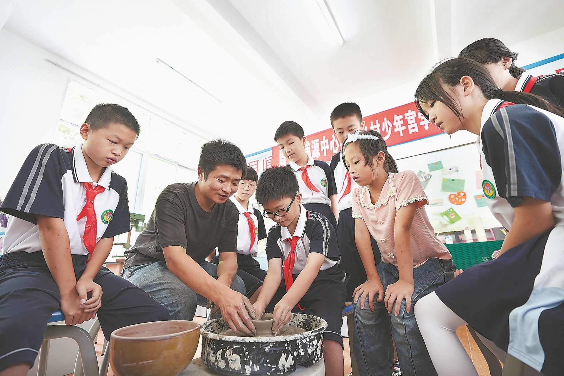 在周寧縣浦源中心小學的非遺文化課上,肖永燦的手工制硋技藝課堂受到學生的熱烈歡迎。