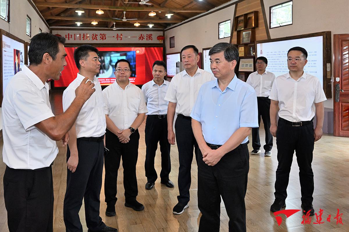 從三沙海邊到福鼎太姥山下,奇峰競秀、村莊和美。2016年2月19日,習近平總書記通過人民網(wǎng)與福鼎市磻溪鎮(zhèn)赤溪村村民視頻連線交流,祝愿鄉(xiāng)親們的日子越過越好。這個被譽為“中國扶貧第一村”的村莊,近年來大力發(fā)展鄉(xiāng)村旅游業(yè)、茶產(chǎn)業(yè)等特色產(chǎn)業(yè),村莊面貌顯著改善,村民收入持續(xù)增長,并被評為全國先進基層黨組織。在赤溪村扶貧展示廳,周祖翼與大家共同重溫了習近平總書記與赤溪村干部群眾視頻連線的難忘場景。周祖翼還察看了大學生創(chuàng)業(yè)示范點,了解大學生返鄉(xiāng)創(chuàng)業(yè)情況,鼓勵他們運用新理念新技術(shù),帶領(lǐng)更多鄉(xiāng)親致富。在村人民會場,周祖翼與市、鎮(zhèn)、村黨組織負責人,基層群眾代表及村里的經(jīng)濟能人、科技特派員代表等圍坐一堂,認真聽取大家對經(jīng)濟發(fā)展、深化改革、鄉(xiāng)村振興、改善民生、轉(zhuǎn)變作風等方面的意見建議。周祖翼說,黨的二十屆三中全會《決定》提出:“運用‘千萬工程’經(jīng)驗,健全推動鄉(xiāng)村全面振興長效機制。”希望赤溪在鄉(xiāng)村全面振興上作示范,發(fā)揮資源獨特、文化深厚等優(yōu)勢,努力實現(xiàn)產(chǎn)業(yè)振興、文化振興、生態(tài)振興、組織振興、人才振興,扎實推進共同富裕。產(chǎn)業(yè)振興,要做好“土特產(chǎn)”文章,把現(xiàn)代生態(tài)農(nóng)業(yè)與旅游休閑產(chǎn)業(yè)深度融合,積極拓寬農(nóng)民致富渠道;文化振興,要大力推進鄉(xiāng)風文明建設,講法治、講科學、講環(huán)保,移風易俗、樹立新風;生態(tài)振興,要堅持綠色發(fā)展理念,繼續(xù)守護好優(yōu)良生態(tài),倡導綠色低碳生活方式;組織振興,要充分發(fā)揮基層黨組織戰(zhàn)斗堡壘作用和黨員先鋒模范作用,當好致富帶頭人;人才振興,要引導大學生、在外經(jīng)商人員、退役復員軍人等回鄉(xiāng)創(chuàng)業(yè),培育專業(yè)技術(shù)人才,傳承傳統(tǒng)技藝,促進各類人才投身鄉(xiāng)村全面振興。