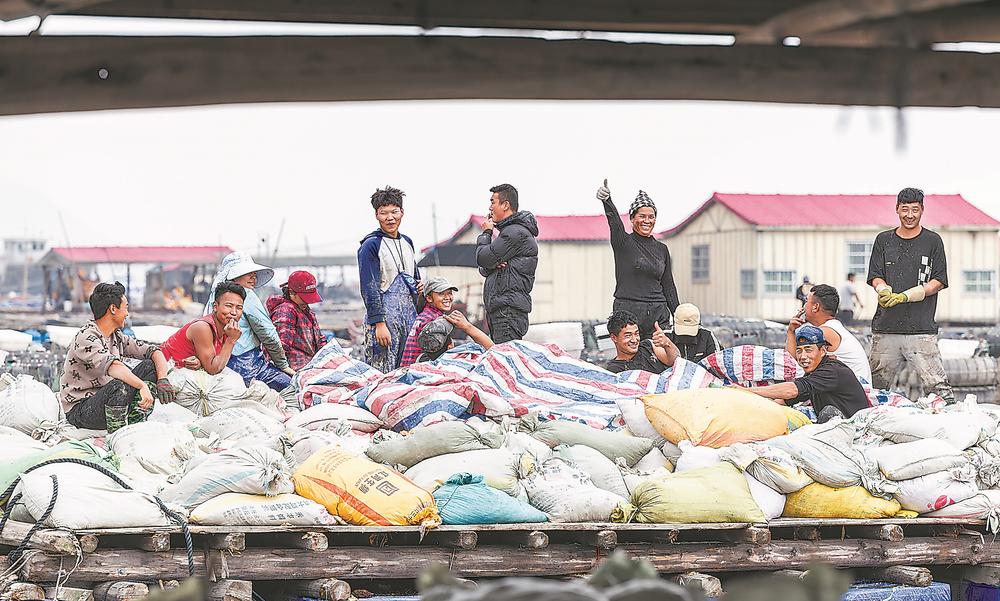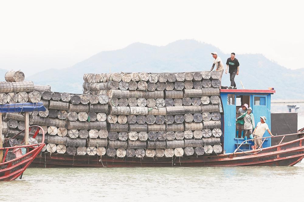 “我們負責搬運吊籠,每個賺6角錢,平均一天能運3000個。”巴足木且一邊熟練駕船,一邊聊著當天的工作,“今天中午退潮前必須運完離岸,不然船就出不去了。”