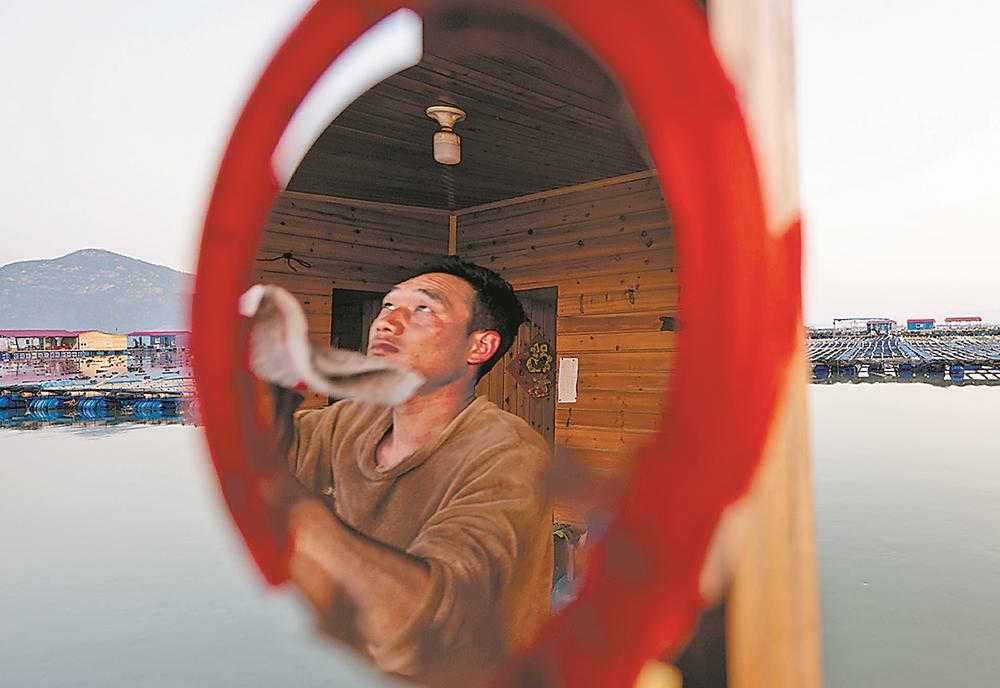 “他們很用心!”聊起巴足木且一家,漁排老板蘇必捷滿口稱贊?,F(xiàn)年55歲的蘇必捷是霞浦圍江村人。曾經(jīng)的圍江,“靠海不吃海”,土地又稀少,村民一度窮困。上世紀八九十年代起,村里開始發(fā)展?jié)O業(yè),由此一路擺脫貧困邁向小康。如今,海參養(yǎng)殖是村里的主打產(chǎn)業(yè),養(yǎng)殖了4萬多筐,年產(chǎn)值2億多元。蘇必捷就是靠這片海先富起來的佼佼者,從十五六歲開始海上養(yǎng)殖,養(yǎng)過蝦、海帶、鮑魚、大黃魚,還創(chuàng)辦加工廠,事業(yè)一路做大、有聲有色。