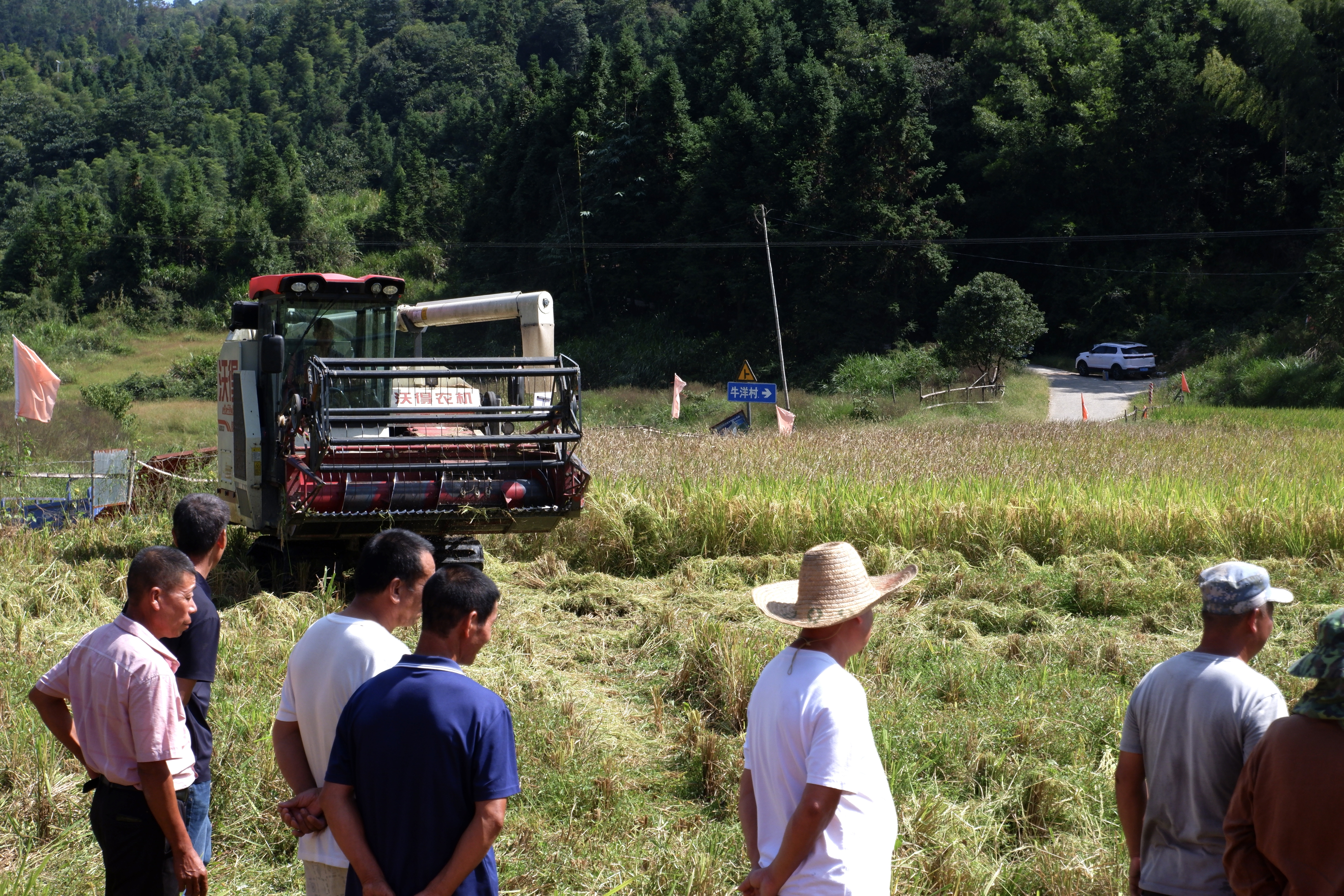 當(dāng)天上午,亭里村的稻田里一派繁忙景象:兩臺(tái)大型聯(lián)合收割機(jī)轟鳴著穿梭在金黃的稻浪中,割稻、脫粒、清選、秸稈粉碎還田等工序一次性完成,短短10分鐘便收割完近1畝水稻。“以前人工收割1畝稻子要3個(gè)人忙一整天,現(xiàn)在機(jī)器一響,半天就能收完10畝,還不用自己曬谷,省時(shí)又省力!”種糧大戶們圍著收割機(jī)仔細(xì)觀察,忍不住算起 “效率賬”。?