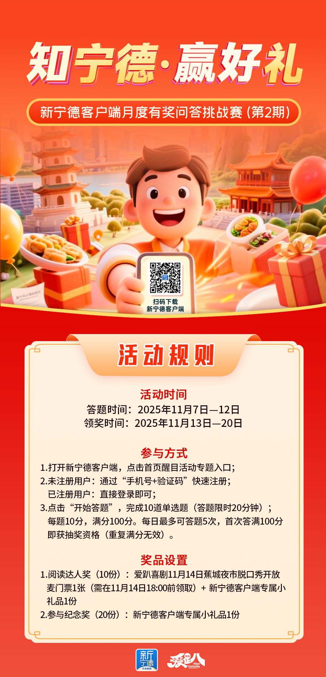 (原標(biāo)題:參與答題,脫口秀門票、新寧德好禮送送送!)