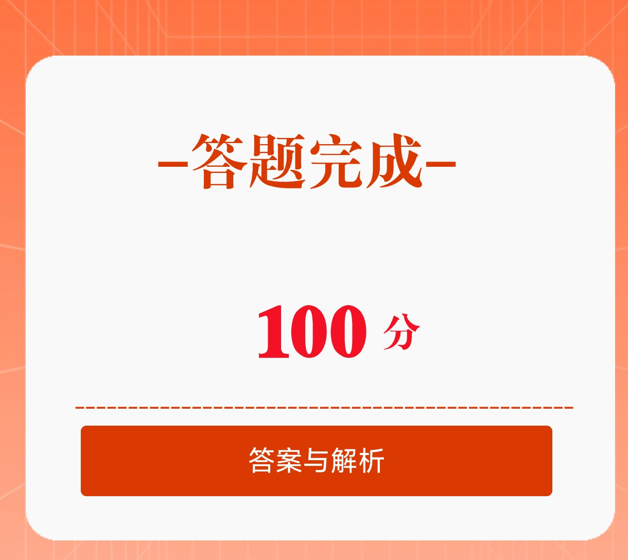 5、所有題目全部答對(duì)(獲得100分)后,即可自動(dòng)獲得統(tǒng)一的抽獎(jiǎng)資格。