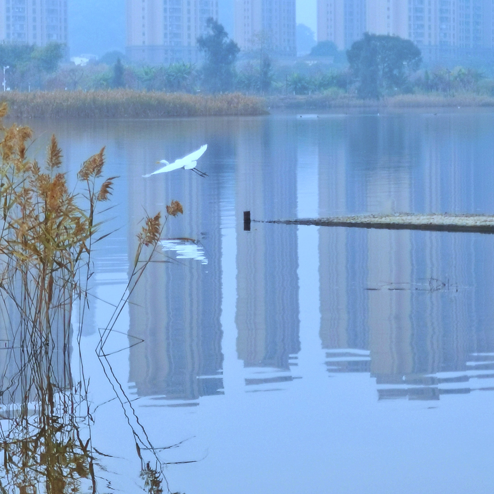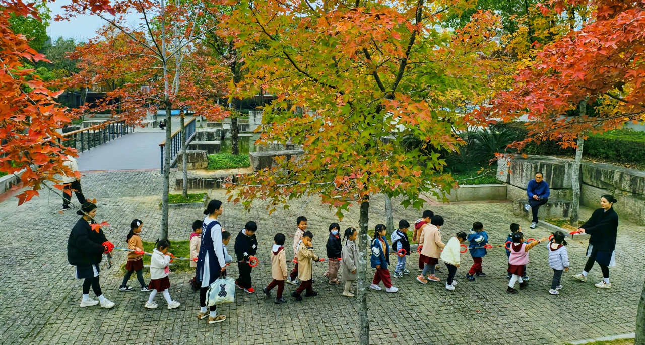 “早晨八點鐘的東湖北岸公園,顯得安靜。城市的喧囂在此似乎自動繞開了,即便只是不經(jīng)意的一瞥,心也會不由自主地沉靜一分。慢行步道在林水間蜿蜒。水面,白霧輕攏。不時,大白鷺掠過灰藍(lán)的水面,展翅飛向高處,紅羽杉已經(jīng)染上秋冬的深紅。我們走過的湖岸,各種水鳥也陸續(xù)飛過。它們顯得安靜,此刻也感染著我們。水明顯是這里慷慨的留白,一根木樁,停在木樁上的白鷺,一條伸向湖心的石板路,走在路上的我們,都在水中看見自己的倒影。各自的安靜,都顯得深情。孩子們在公園里游學(xué),城市中的人文與自然的野趣,在相互融合。”福建省作協(xié)會員,古田籍作家依寒寫道。
