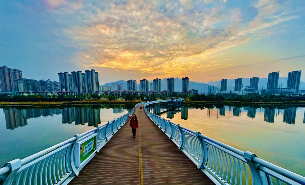 被赤鑒湖公園的風(fēng)光深深吸引,福建省作協(xié)會員唐戈不由感嘆:“初冬的風(fēng),挾著東海的清潤擁進這座南國小城,不見凜冽,只有溫軟。青春時決然離去的這個蒼莽灘涂與粼粼海水相擁的地方,轉(zhuǎn)眼間便蛻作一方宜居宜業(yè)天地。東湖塘的水漾著淺淡的綠,像一方被初冬暖陽焐熱的祖母綠,時有白鷺掠過,驚起一圈圈細(xì)碎的漣漪;赤鑒湖邊厚實的黃蘆葦在風(fēng)的攛掇下?lián)u曳出滿湖的溫柔絮語??諝饫镲h著草木與水的清新氣息,紅塵的氣息裹在時光緩緩流淌的靜謐里。這般恬淡如水、柔情脈脈的城,見一眼,便生了扎根的念頭——想守著這一汪湖光,枕著這幾縷海風(fēng),把往后的歲月,都安放在這南國初冬的溫柔鄉(xiāng)里。”
