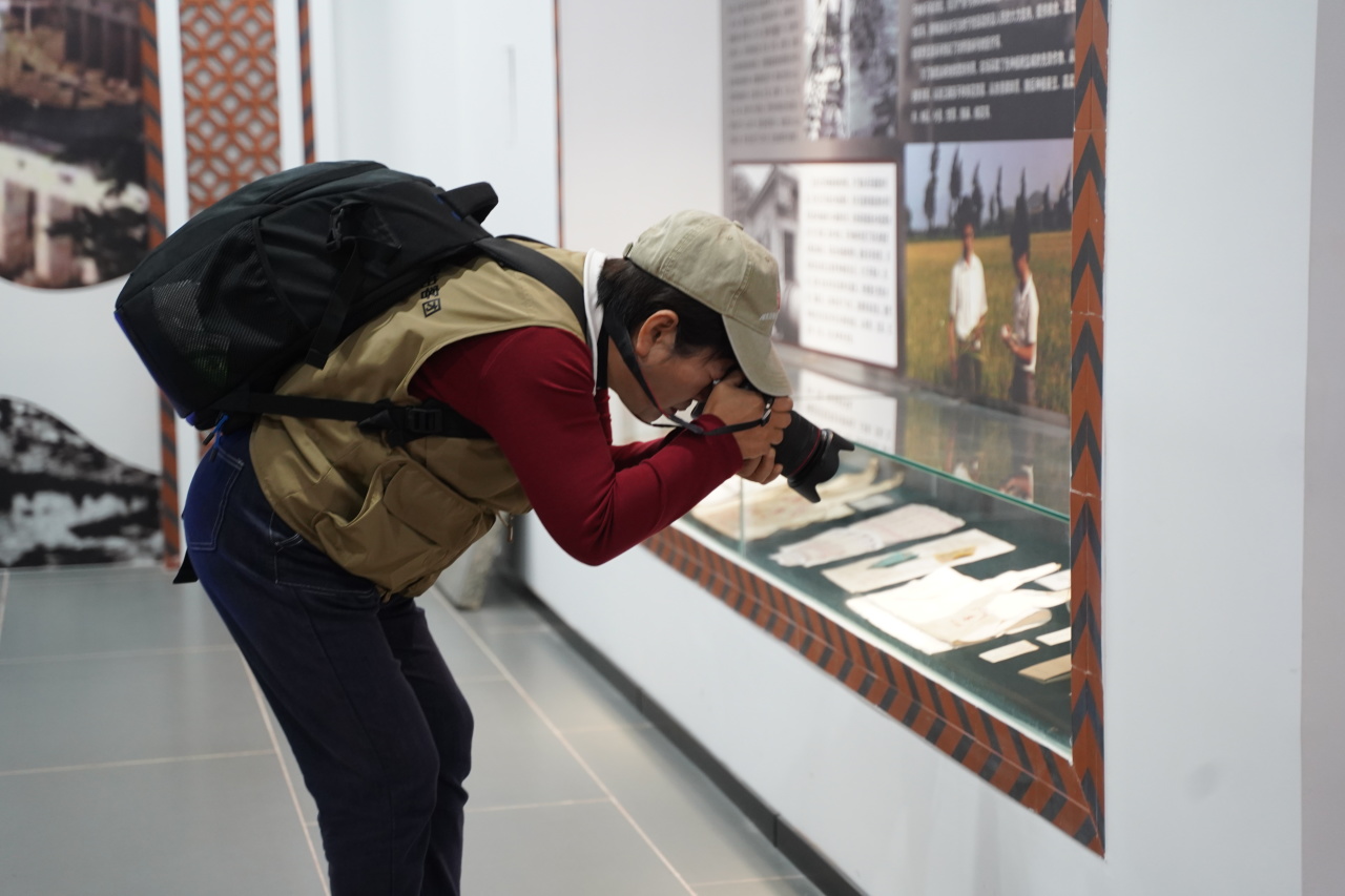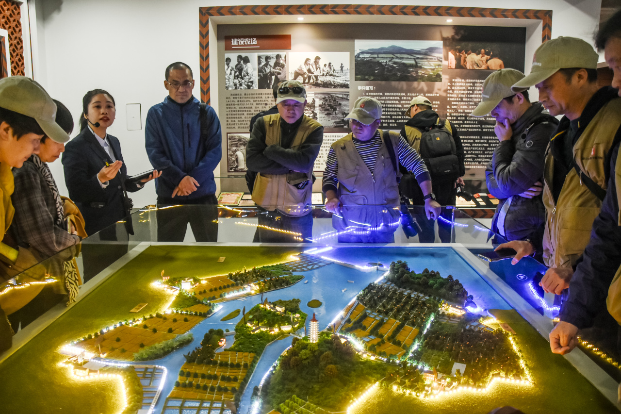 要讀懂東僑,便不能止步于她明媚的容顏,更需走向她深植的根脈。于是,采風(fēng)團的步履從湖畔輕盈的現(xiàn)實中暫別,踏入東湖塘華僑農(nóng)場場史館那片沉靜的記憶之域。時間在此仿佛變得稠密,每件舊物都是歲月的證人。褪色的相片里拓印著創(chuàng)業(yè)的足跡,泛黃紙頁上留存著篤定的信仰,質(zhì)樸的器具表面,依稀可見往昔奮斗的痕跡。在這里,采風(fēng)團以目光撫摸歷史,用鏡頭莊重書寫敬意,在沉默的陳列中,聽見一段崢嶸歲月的深沉回響。