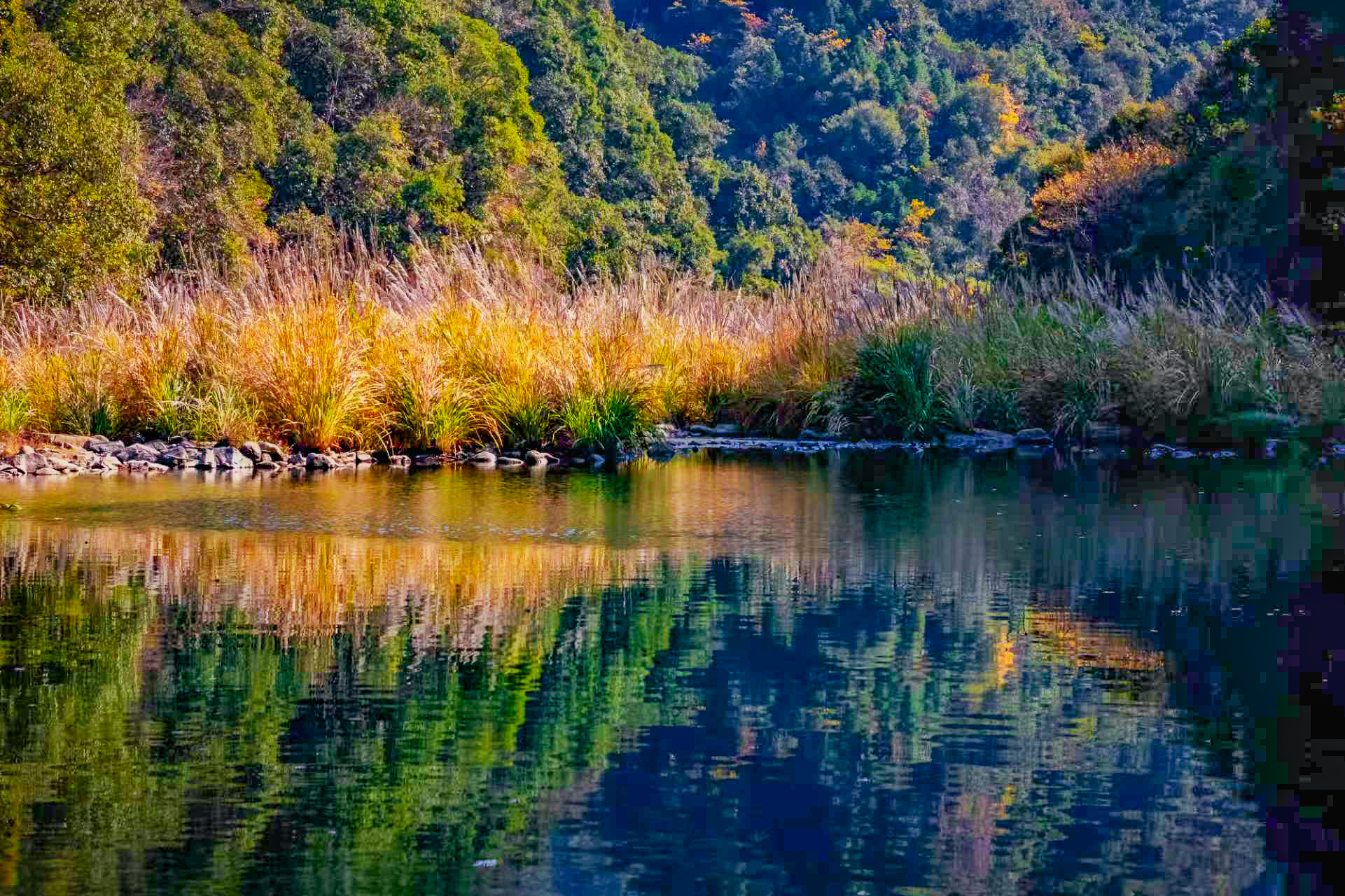 周邊山巒連綿起伏,現(xiàn)保存有福建沿海山區(qū)種群面積最大、生態(tài)功能較為完善的天然次生闊葉林。片片楓葉紅,倒映碧潭中,蝶兒飛舞、魚蝦嬉戲,久久未被塵世侵?jǐn)_。