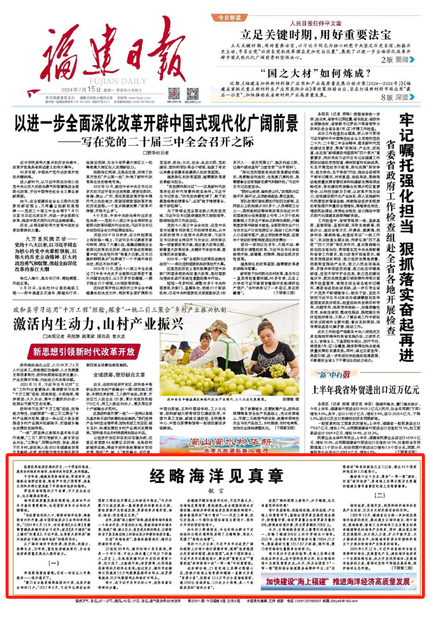 福建日報(bào)刊發(fā)“敏言”文章:經(jīng)略海洋見真章