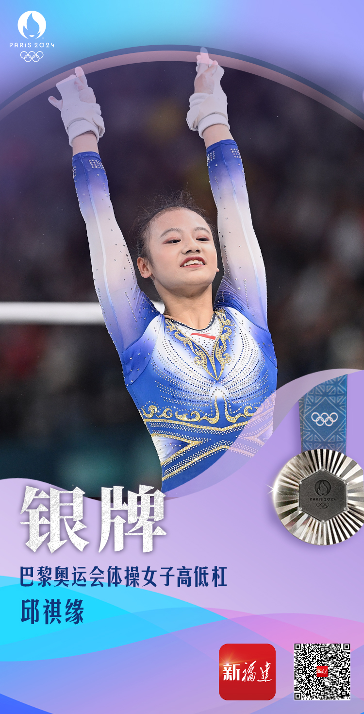當(dāng)?shù)貢r(shí)間8月4日,在貝爾西體育館舉行的巴黎奧運(yùn)會(huì)體操女子高低杠決賽中,來自福建的邱祺緣以一套難度7.2的動(dòng)作得到15.500分,為中國體育代表團(tuán)奪得一枚銀牌。這枚銀牌也是福建運(yùn)動(dòng)員在本屆奧運(yùn)會(huì)上收獲的第二枚獎(jiǎng)牌。