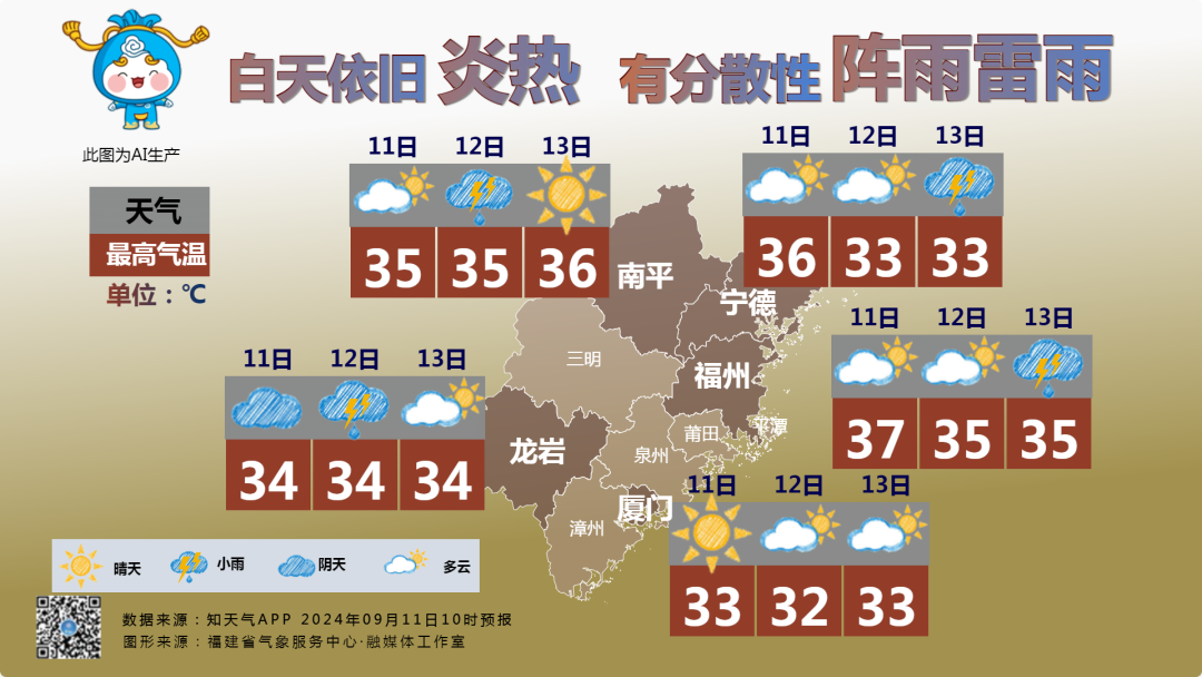13日,福建全省多云,部分有陣雨或雷陣雨,局部大雨。