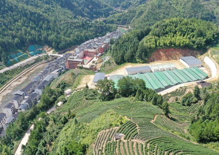 壽寧縣下黨鄉(xiāng)下黨村村貌、有機(jī)珍稀食用菌生產(chǎn)基地(右)和附近的茶山景觀。新華每日電訊記者 林善傳 2023年8月5日 攝
