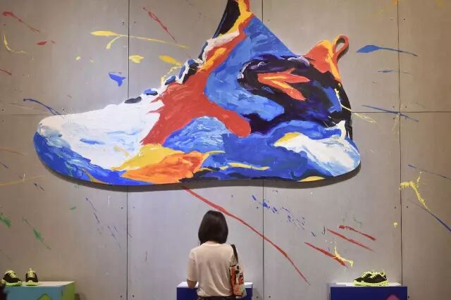 ▲ 4月18日,市民在博覽會(huì)上挑選國(guó)產(chǎn)運(yùn)動(dòng)鞋