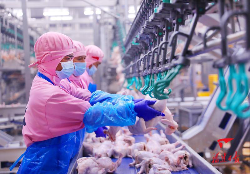 圣農(nóng)發(fā)展有限公司加工車間,工人正在生產(chǎn)線上忙碌。黃杰敏 攝