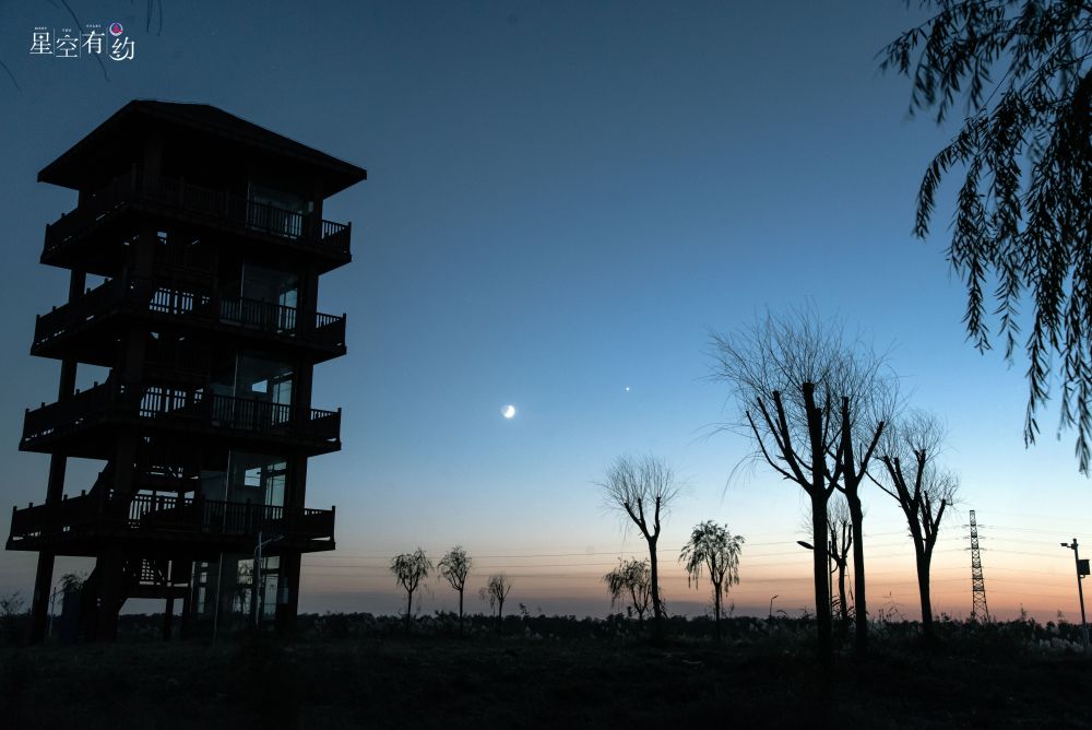 2024年11月5日在天津靜海區(qū)團(tuán)泊湖拍攝的金星伴月。(楊婧攝)